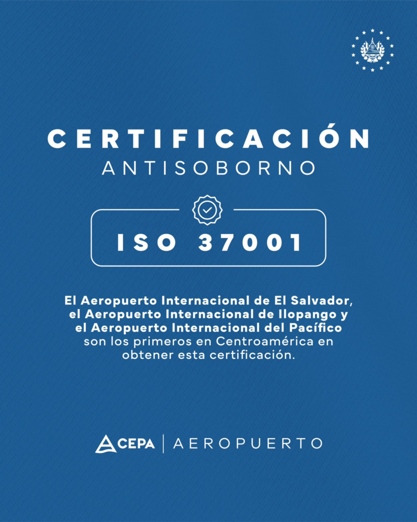 La certificación tiene un alcance institucional e incorpora a las Oficinas Centrales de CEPA, así como al Aeropuerto Internacional de El Salvador y al Aeropuerto Internacional de Ilopango. Con este logro, ambas terminales aéreas se colocan entre las primeras de Centroamérica en contar con un sistema antisoborno certificado bajo estándares internacionales. Además, el proyecto del Aeropuerto del Pacífico también está incluido dentro del alcance del sistema, lo que extiende estos controles a una de las obras estratégicas en desarrollo.