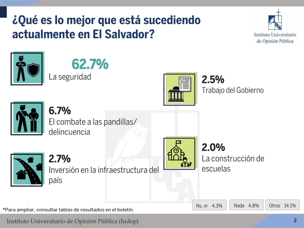 El 62.7% de salvadoreños ve la seguridad como el principal logro de 2025, según encuesta UCA