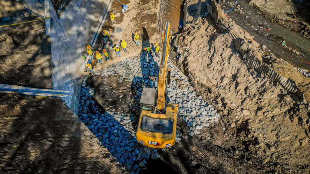 El Ministerio de Obras Públicas (MOPT) ejecuta la construcción de un nuevo puente tipo box culvert de doble celda en la urbanización Villa Lourdes, distrito de Colón, en La Libertad Oeste, una obra prioritaria que permitirá restablecer la conectividad y garantizar el tránsito seguro de peatones y vehículos en la zona.