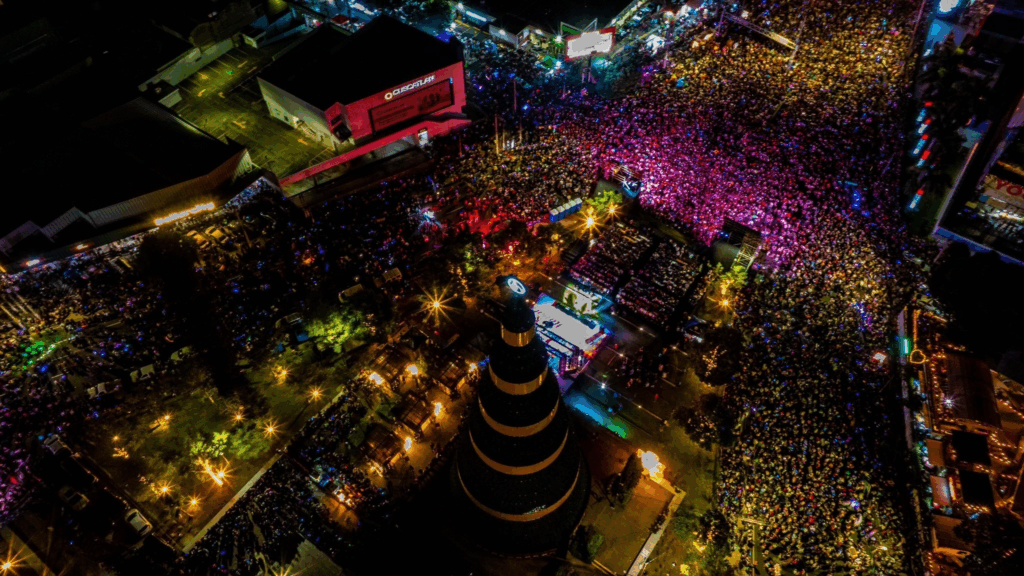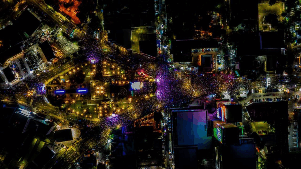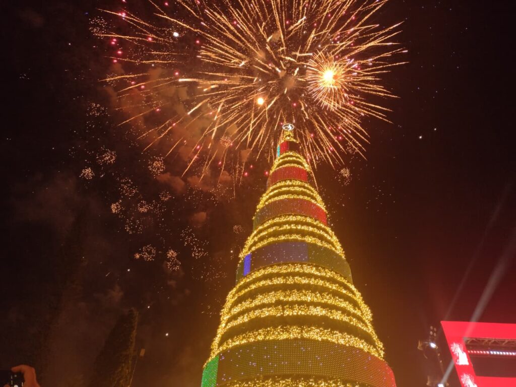 El evento del encendido del árbol contó con un ambiente festivo, lleno de música, luces, drones, sonrisas y las participaciones de la soprano Gracia González y la cantante pop, Ana Lú Dada.