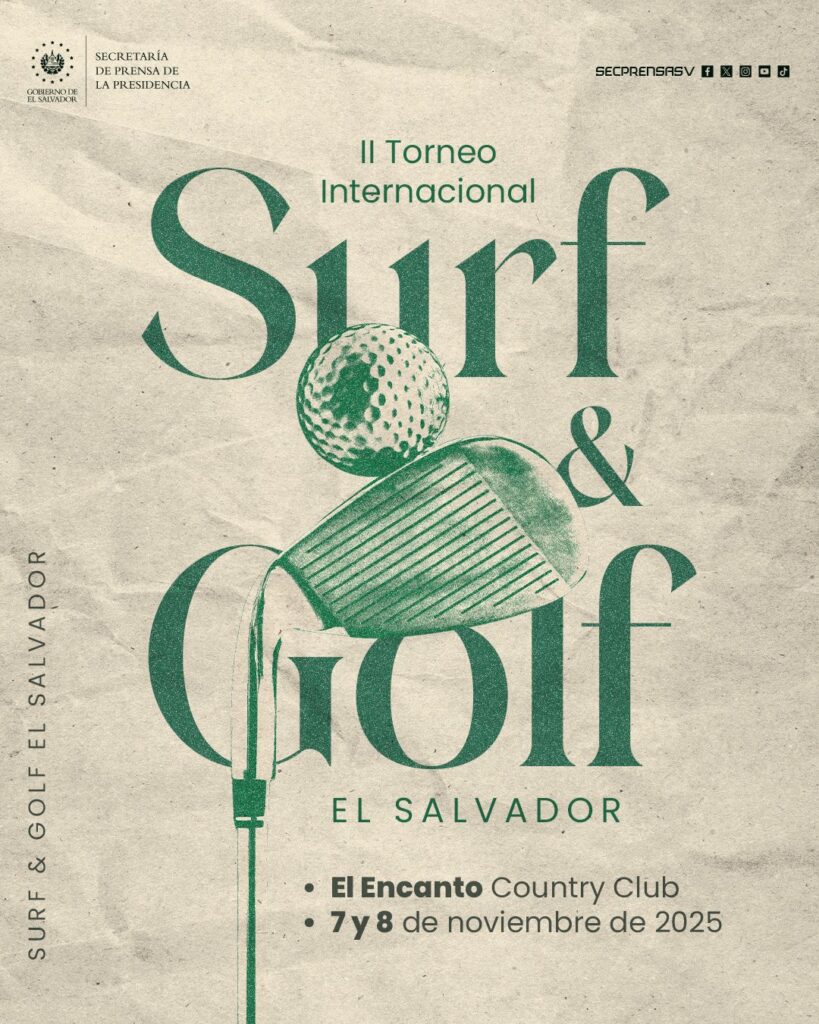 El II Torneo Internacional El Salvador Golf & Surf inicia este viernes como parte de las estrategias que fortalecen el turismo deportivo y dinamizan la actividad económica en el país. El evento reúne a 90 participantes provenientes de Estados Unidos, Costa Rica, España, Guatemala, Venezuela y El Salvador, y se consolida como una vitrina internacional que combina deporte, inversión y promoción de destinos turísticos nacionales.