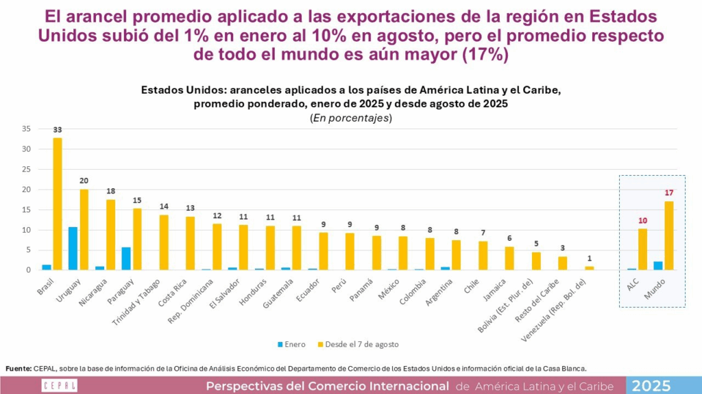 Aranceles de EE. UU. a exportaciones de América Latina se incrementan hasta un 10 % en agosto; promedio global alcanza el 17 %