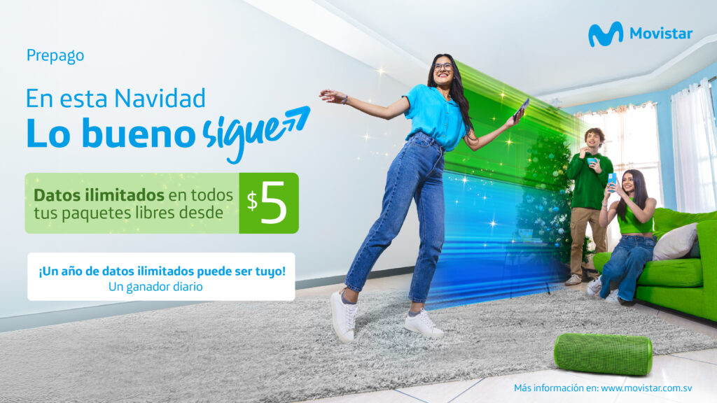“Con estas promociones queremos garantizar que nuestros clientes disfruten la mejor experiencia de conectividad durante esta Navidad y más allá. Hemos preparado beneficios que responden a sus necesidades actuales”, añadió Diana Montano, Jefe de publicidad de Movistar El Salvador.