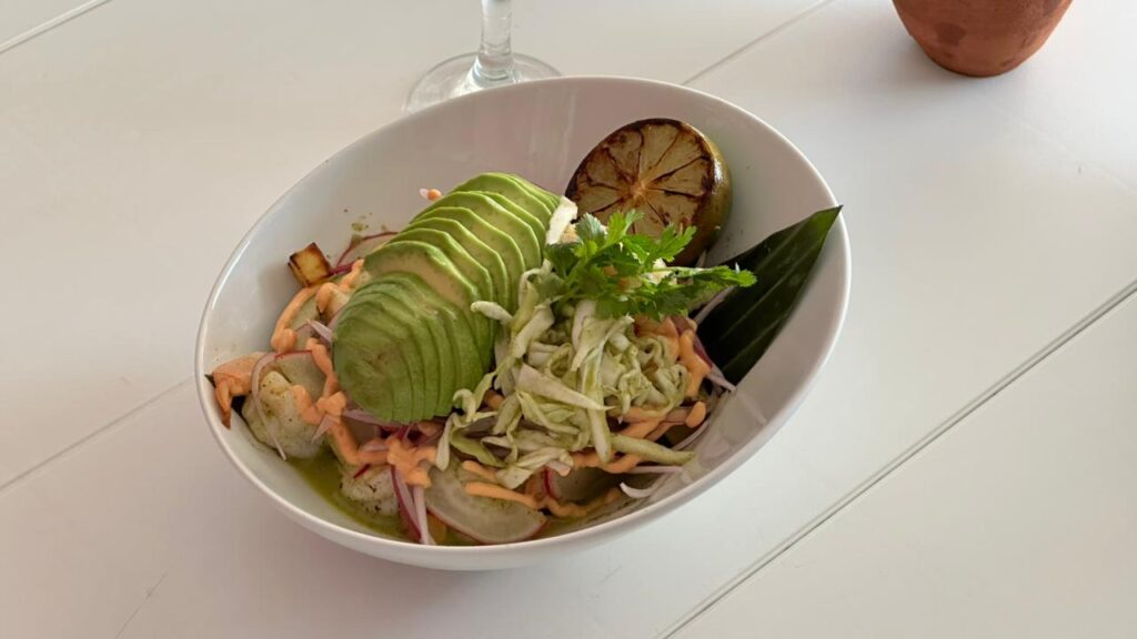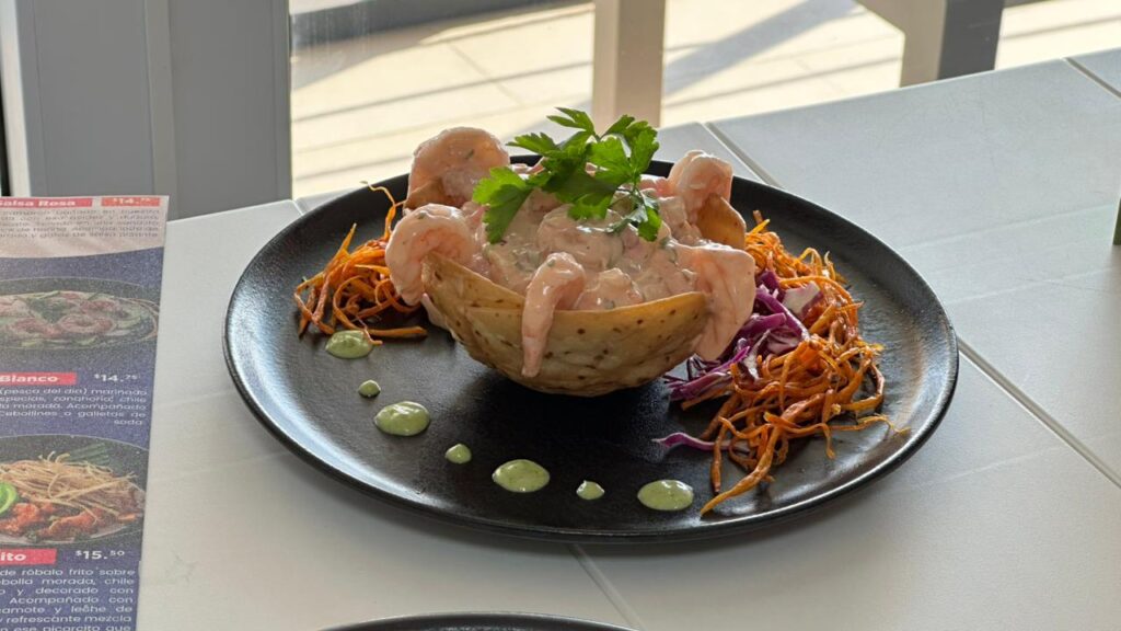 Entre las opciones se encuentra el Ceviche a Caballo, preparado con filete de róbalo, elote amarillo, ají rojo, rábano y aguacate. También destaca el Ceviche Tropical, que combina róbalo marinado en cítricos y ají amarillo con mango y camote frito.
