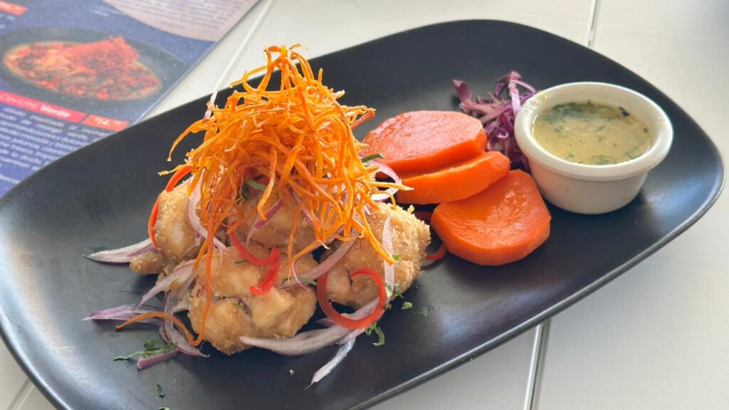 Otra alternativa es el Ceviche Verde, que mezcla róbalo con mango verde, piña tatemada, cebolla y cilantro. Asimismo, el menú incluye el Ceviche Frito, que presenta filete de róbalo frito servido sobre cebolla morada y chile pimiento rojo, acompañado de leche de tigre y camote frito.