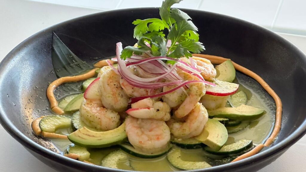 El menú también incorpora el Ceviche de Atún, elaborado con atún rojo fresco, mango tatemado, aguacate, pepino y jugo de limón, acompañado de nachos de la casa. A esta oferta se suma el Ceviche de Camarones Tatemado, preparado con camarones marinados en aguachile y sal de tortilla negra, acompañado de salsa mayo-chipotle, mango tatemado, pepino y rábano.