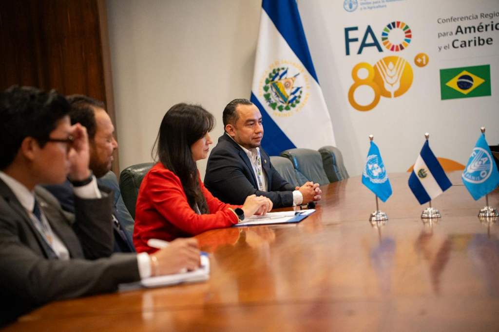 One of the meetings was with the Director-General of the Food and Agriculture Organization of the United Nations (FAO), Qu Dongyu, along with the Vice Minister of Agriculture and Livestock of El Salvador, Óscar Domínguez. During the meeting, the officials discussed El Salvador’s designation as the host of the FAO Regional Conference for Latin America and the Caribbean in 2028, known as LARC40.