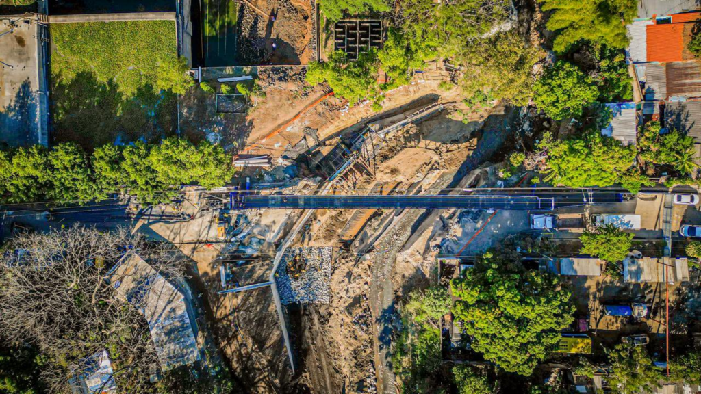 The Ministerio de Obras Públicas (MOPT) is constructing a new double-cell box culvert bridge in the Villa Lourdes neighborhood of Colón, in the La Libertad region. This priority project will restore connectivity and ensure the safe passage of pedestrians and vehicles in the area.