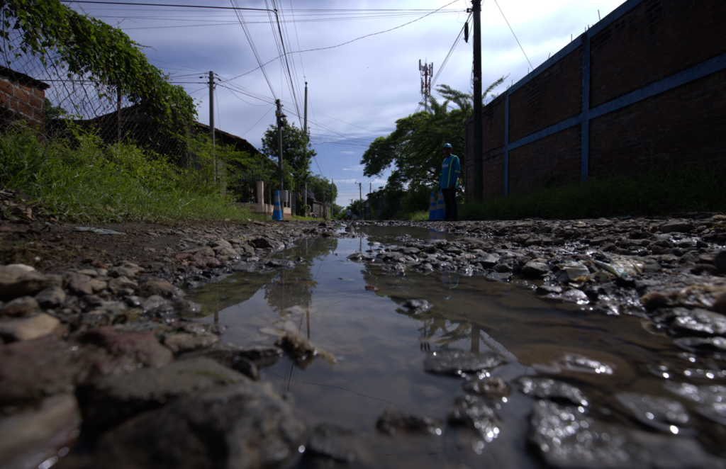 In addition, two pedestrian walkways made of hydraulic concrete were built, each 2.5 meters wide and 15 centimeters thick. Longitudinal drainage systems—such as curbs, gutters, and gutters—and transverse drainage systems, including culverts and 36-inch diameter reinforced concrete pipe, were installed along the project route to ensure proper water runoff into a nearby ravine.