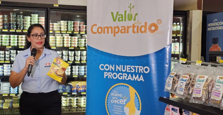 Una Mano para Crecer: Strengthens salvadoran SMEs through training and technical support in key areas such as finance, logistics, marketing, and sales. Hermel, a 100% national company, was able to diversify its food product portfolio, including flavored powdered gelatins, flan, Chantilly cream, and chicken, beef, and shrimp consommés, among others, thanks to Walmart’s support.