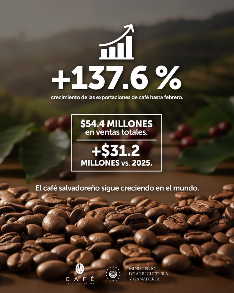 This increase represents one of the most significant advances in recent years for salvadoran coffee farming, a historically key sector for the national economy. In monetary terms, exports reached US$54.4 million in total sales, representing an increase of US$31.2 million compared to the same period in 2025.