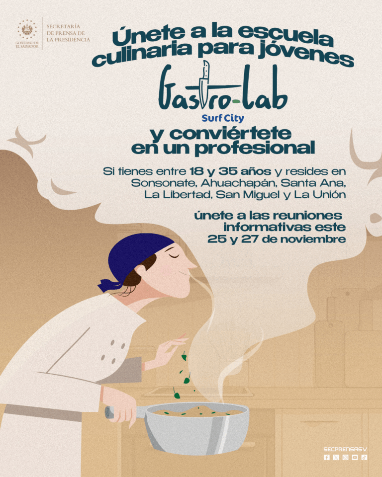 The invitation is open to residents of Sonsonate, Ahuachapán, Santa Ana, La Libertad, San Miguel, and La Unión. The program aims to provide technical tools and practical knowledge to enhance young talent in the culinary sector, one of the fastest-growing in the country.