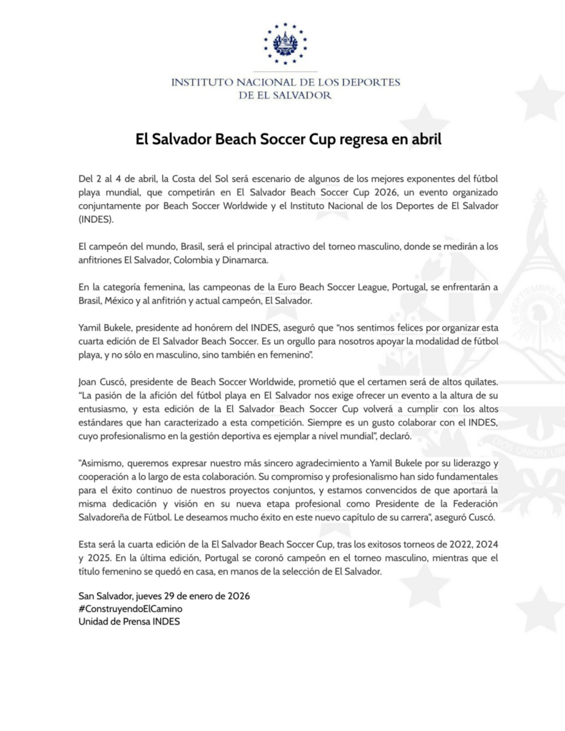 El Salvador Beach Soccer Cup returns to the Costa del Sol in april