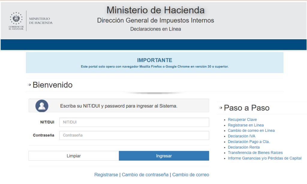 - Personas jurídicas o extranjeras: deben ingresar con su Número de Identificación Tributaria (NIT).