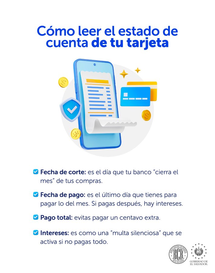 El Banco Central de Reserva de El Salvador ha compartido una serie de consejos prácticos para que los usuarios de tarjetas de crédito aprendan a leer su estado de cuenta de forma clara y responsable.