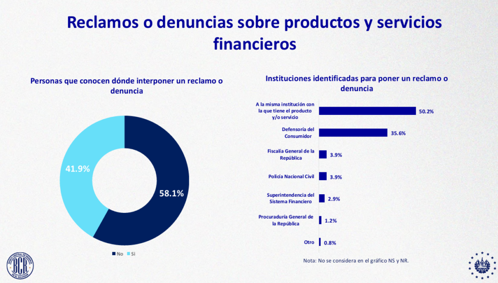 El BCR destaca que mejorar el acceso a la información y promover el conocimiento de estas instancias puede contribuir a un sistema financiero más transparente y equilibrado, donde los usuarios se sientan respaldados y con mayor confianza para utilizar productos financieros. En ese sentido, reducir el 58.1% de desconocimiento es clave para avanzar hacia una inclusión financiera más efectiva y justa en El Salvador.
