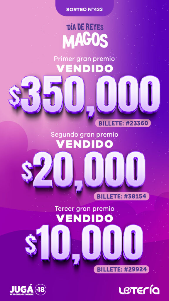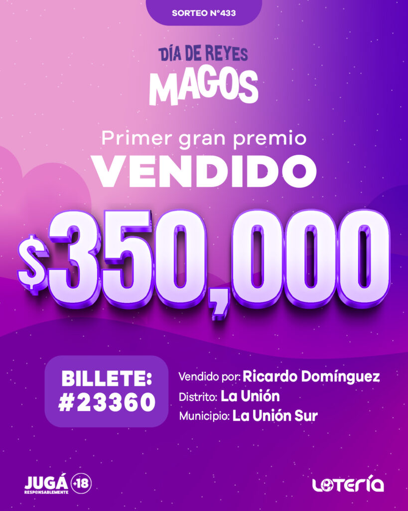 Primer Premio: US$350,000 – Billete N.º 23360. Vendido.