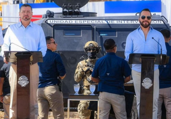 El presidente de la República de El Salvador, Nayib Bukele, y su homólogo de Costa Rica, Rodrigo...